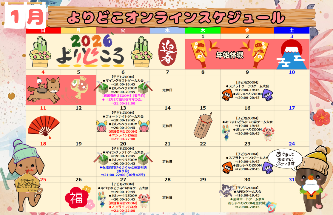 こんにちは♪2026年1月のよりどころオンラインイベント一覧になります(^^)‼